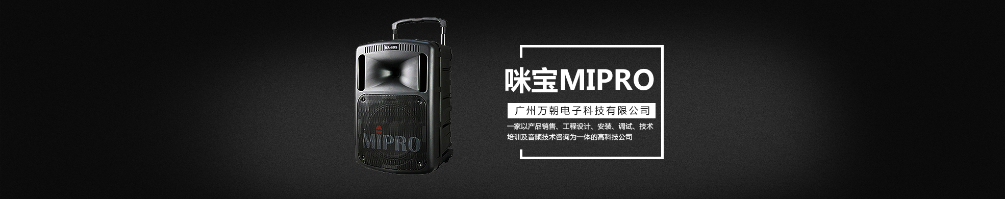 廣州萬朝電子科技有限公司成立于2008年,公司主要是一家以產(chǎn)品銷售、工程設計、安裝、調(diào)試、技術(shù)培訓及音頻技術(shù)咨詢?yōu)橐惑w的高科技公司。主要代理銷售產(chǎn)品包括:咪寶MIPRO,舒爾SHURE,森海塞爾SENNHEISER,BOSE專業(yè)音箱,JBL系列音箱,皇冠CROWN功放,QSC功放,聲藝SOUNDCRAFT調(diào)音臺,雅馬哈YAMAHA,DBX及AKG等周邊器材。